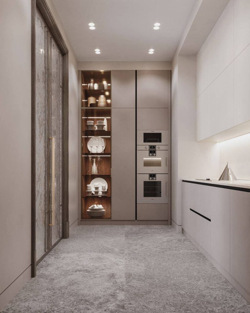 В любом проекте важно продумать несколько сценариев освещения, особенно средний свет — торшеры, подсветки (например, в шкафах), настольные лампы. Не стоит забывать и про маленькие светильники, встроенные под плинтус или в столярку. Такие детали заказчик оценит моментально: встав ночью, ему не придется включать основной свет и будить домочадцев.