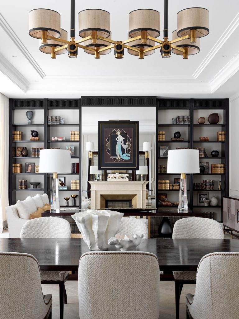 Камин в гостиной — не самый очевидный, но не менее полезный источник света. Его естественное приглушенное освещение скрасит любой вечер, будь то роскошный ужин или тихое времяпрепровождение с книгой. Чтобы свет камина был еще мощнее, можно оформить топку латунными панелями: они мягко отражают пламя и рассеивают свет.