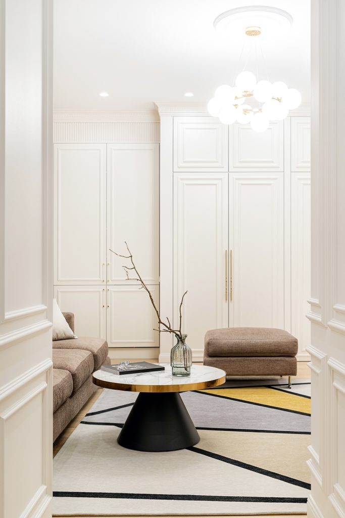 В столь гармоничном интерьере особое значение приобретают детали. Поэтому из огромного ассортимента салона ALITER Евгения Хрящевская подобрала стильную и надёжную фурнитуру, подчеркнув с её помощью благородство неоклассического стиля.