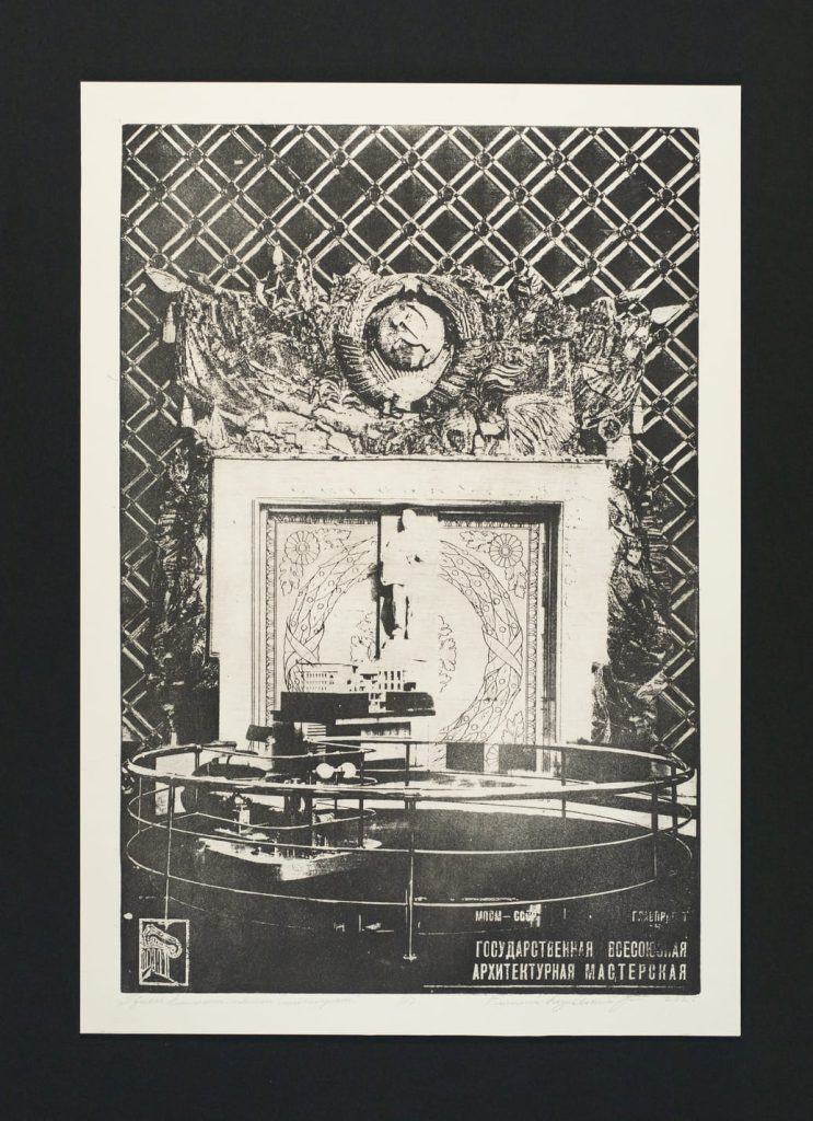 Офорт — это всегда тактильность, многослойность и рукотворность. Добавьте к этому идеологический контекст, архитектуру и архитектуру власти — ведь речь о главной промышленной выставке страны, витрине советского строя. На каждом листе артефакты: павильон, чертежи и документы. Но показанные безоценочно — ни критики, ни романтизации прошлого. Просто рассказ о том, как идеология вплетается в архитектуру и символику. А делает она это всегда и везде: и в Древнем Риме, и при Сталине.