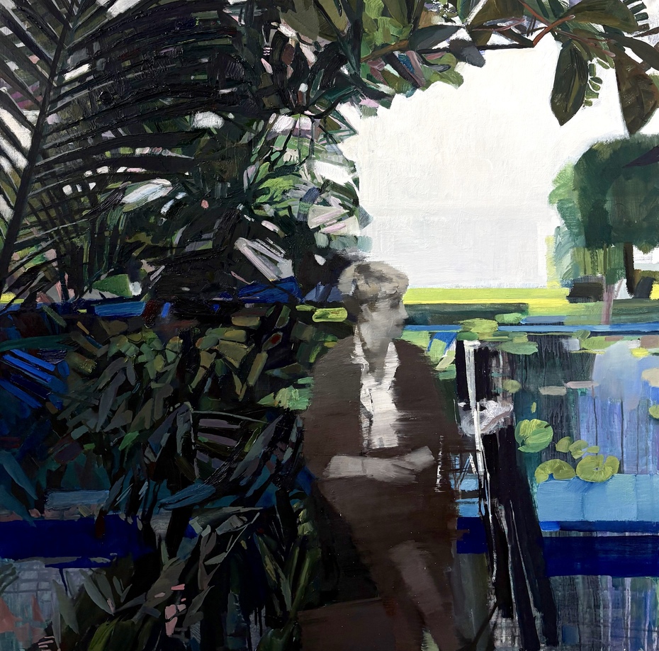 Второй автор — Вероника Федорцова. В экспозицию стенда вошёл только один её холст («В саду»), но он мне напомнил два имени мирового уровня — Виталия Пушницкого и Герхарда Рихтера — и я попросила показать другие её работы.