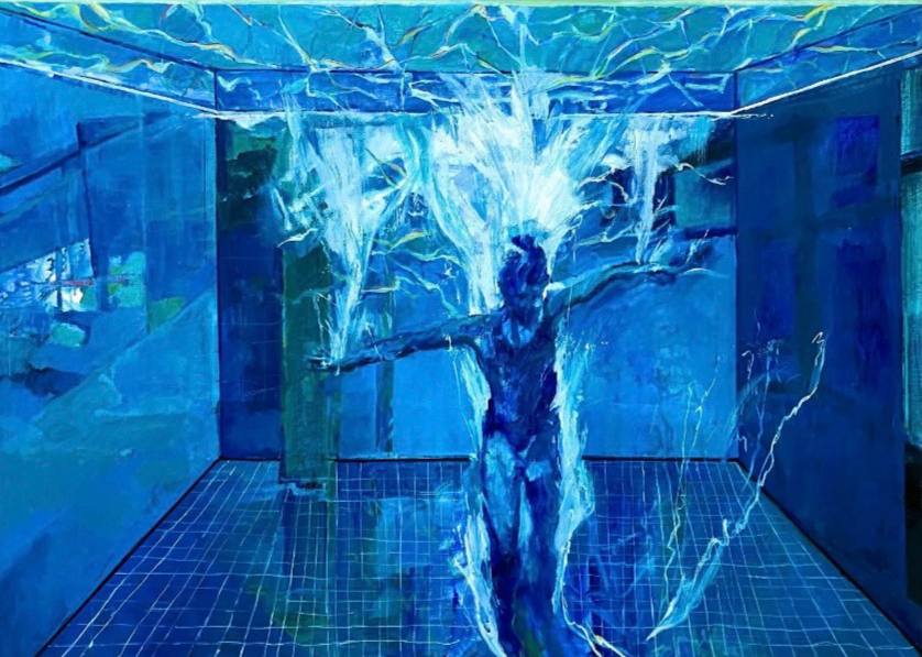 Техника смешанная, сложная — шелкография и масло, то есть механическое и ручное, повторяемое и уникальное, документ и эмоция. Думаю, что такой микс — это метафора нашего восприятия: мы видим по-новому (всё больше через экраны), а чувствуем по-старому (через тактильные ощущения). Мне понятно желание автора показать разное — разными приёмами.