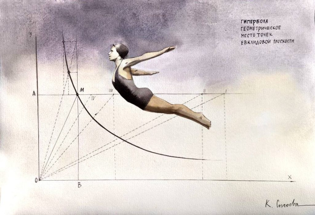 Одним словом ее манеру не описать. По линям это что-то нежное, плавное из 50х-60х, по мысли – сложное, многосоставное, по тональности – ироничное, по форме – напоминающее учебник физики или математики.