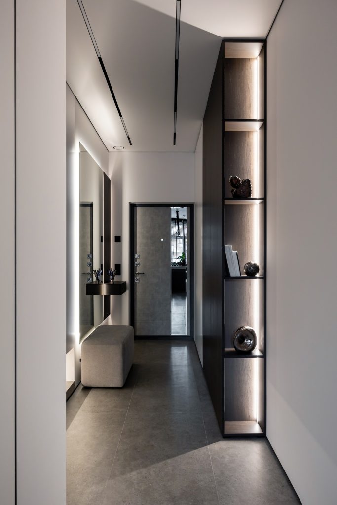 Даже помещения, лишённые окон, дизайнеры сумели наполнить светом, умело используя зеркальные полотна, подсветку, выверенные цветовые решения.
