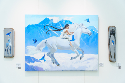 Картины художницы — это не просто изображения, а многогранные симфонии смыслов, где каждый образ — будь то синяя птица, длинные косы или белые лошади — становится символом, открывающим зрителю дверь в мир философских размышлений и эмоциональных переживаний.