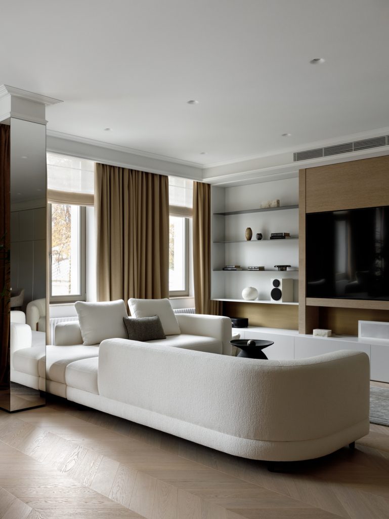 Заказчики выразили желание видеть в своей городской резиденции светлые оттенки цветов и элементы изысканности, отличные от деревенского стиля их загородного жилища.