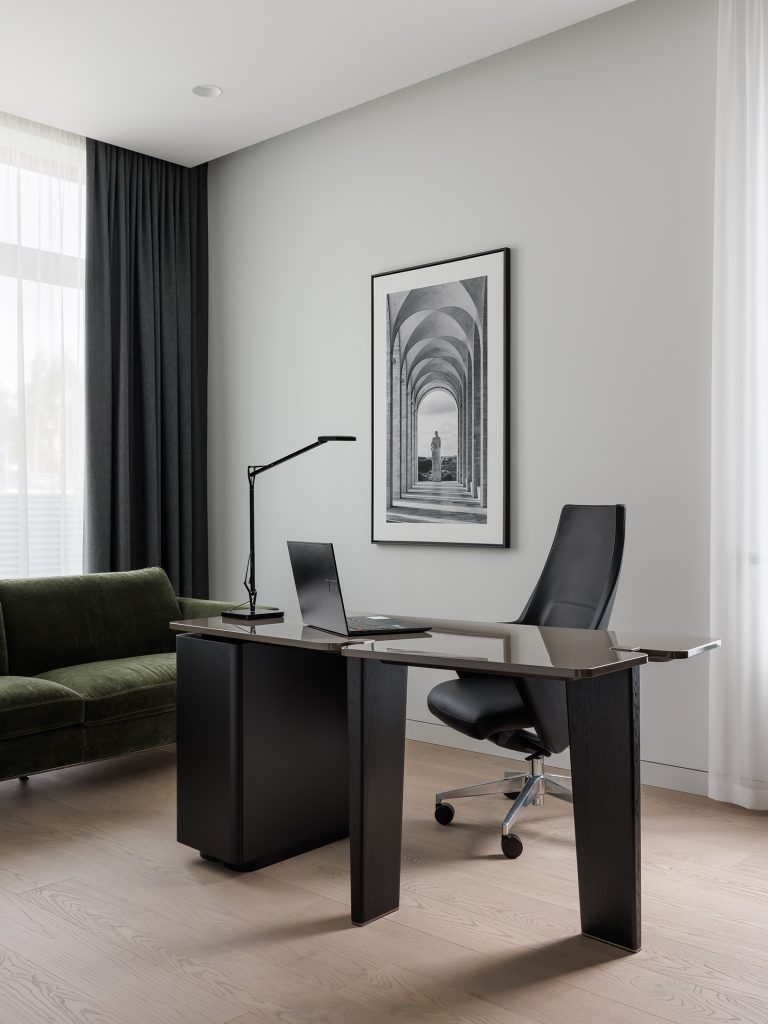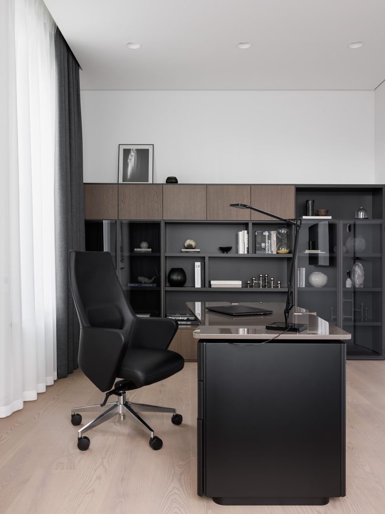 Кабинет — вотчина хозяйки, и ещё на стадии проектирования функционал помещения был продуман до мелочей: ничто здесь не будет отвлекать от работы.