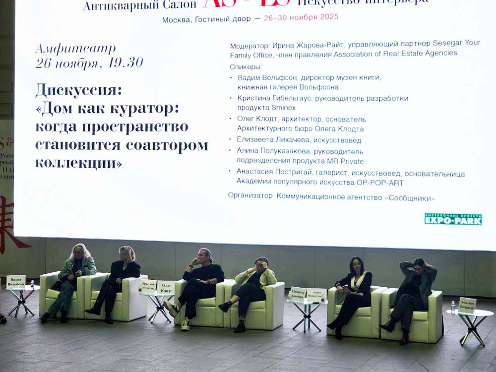 26 ноября в рамках выставки «51 Российский Антикварный Салон», проходящей в Гостином дворе в Москве состоялась увлекательная дискуссия на тему: «Дом как куратор: когда пространство становится соавтором коллекции».