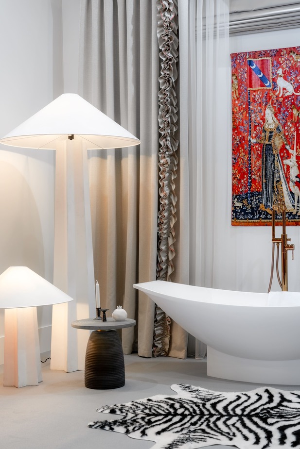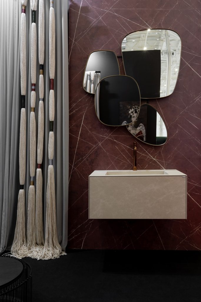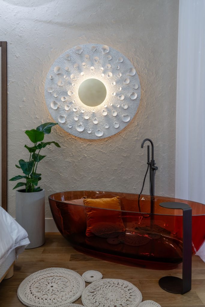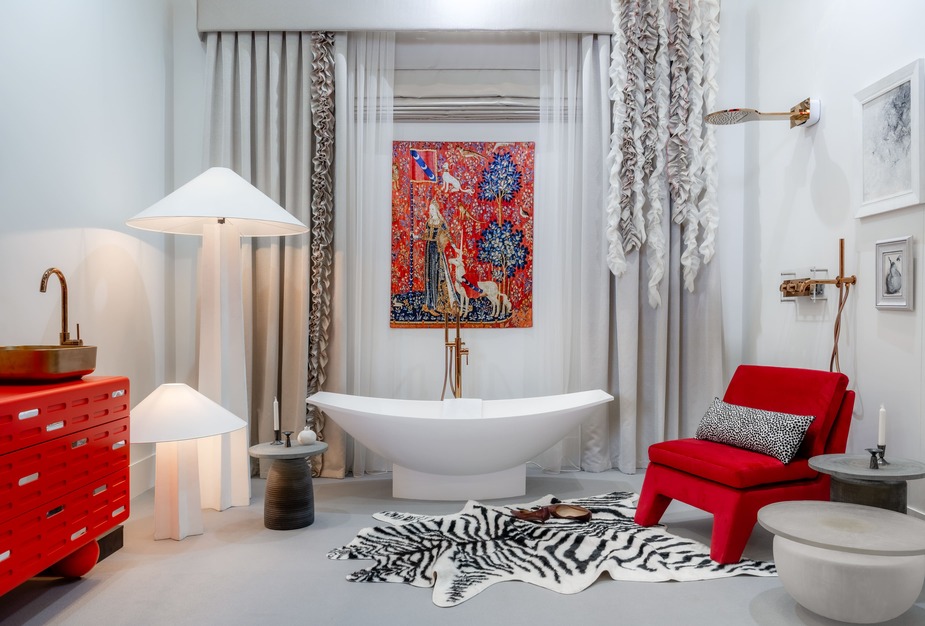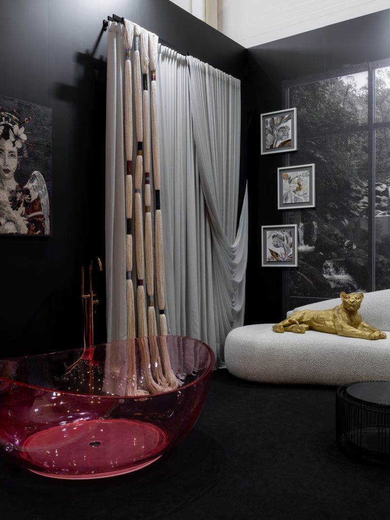 Дизайнер Валерия Диченскова предложила интерпретацию ванной комнаты под названием «Яркая роскошь», где минимализм белых поверхностей дополнялся яркими акцентами, создавая впечатление утончённой динамики. В оформлении участвовали ABBER, «Текстильная мастерская Виты Ковалёвой», Covali, StekloMet и НСМ–Интерьер.