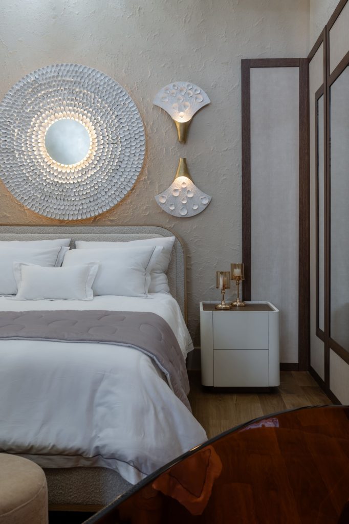 Проект «Гармония внутри», авторства Натальи Лаховой и Марии Засухиной, погружал гостей в атмосферу южного побережья. Сочетание натуральных материалов, ручных фактур и мягкого света создавало пространство для отдыха и восстановления внутреннего равновесия. Посетители могли прикоснуться к обстановке, в которой каждая деталь — от ковра ручной работы SiЛЕНА до постельного белья Home Inspiration и инженерной доски ArtParquet — была наполнена идеей гармонии и связи с природой.