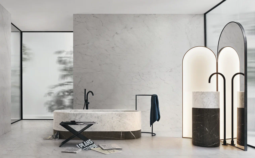 «Noorth и Vitage — две грани итальянского дизайна, словно Милан и Флоренция в мире сантехники, — рассказывает Анастасия Захарова, руководитель департамента по работе с дизайнерами и архитекторами «Макслевел». — Noorth воплощает рациональность и минимализм, где каждая линия говорит о безупречной инженерии и точности исполнения. Это ванная, которая органично продолжает интерьер, сливаясь с кухней, гостиной и спальней благодаря четкой геометрии и лаконичным материалам. Vitage же создает особую атмосферу, превращая ванную в настоящую сцену. Здесь всё работает на создание эмоционального фона: мебель, свет, зеркала. Бренд выделяется выразительными фасадами, изящными силуэтами и ручной отделкой, где дерево, металл и стекло создают неповторимые сочетания».