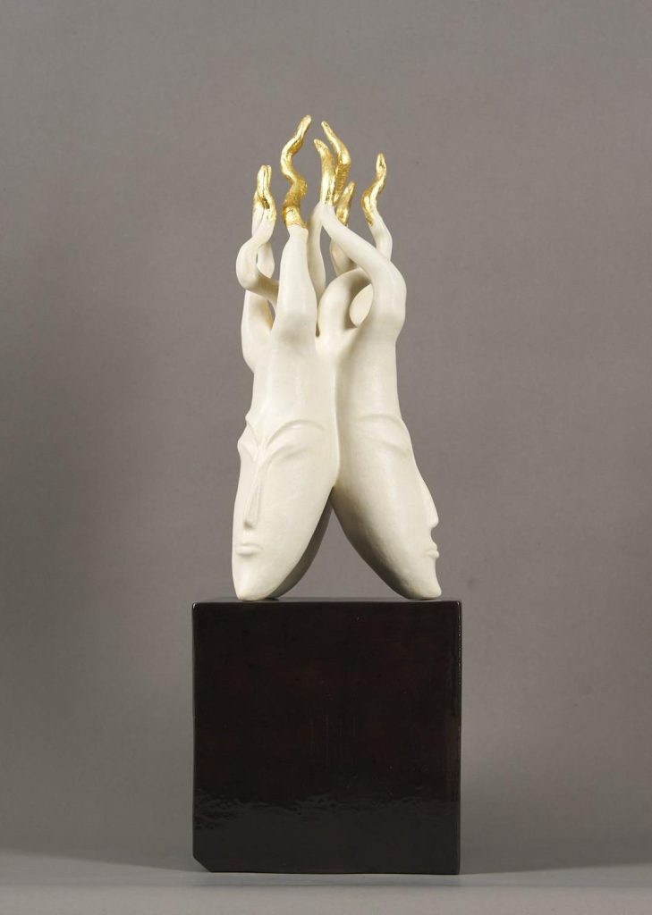 Образ будущей работы возникает у меня в законченном виде. Получается, что вижу историю с конца и потихонечку иду к ее началу. Примеряю и решаю, как именно добраться к тому, что я увидела. Своего рода аналитическая инженерия. При всей сложности это очень захватывает, и я всегда с нетерпением жду, чтобы увидеть результат проявленным. Эмоциональное состояние при работе с материалом очень важно. Ведь в моих действиях, при создании работ, нет ничего стереотипного. При этом каждое усилие или движение в материале должно обладать легкостью и, я бы сказала, грациозностью. По сути художник – керамист “оживляет” кусок неживой материи – вкладывая частичку себя в каждую новую скульптуру.
