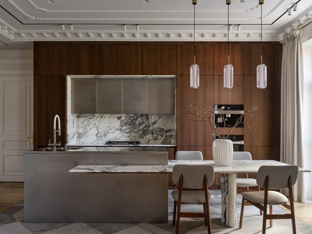 Викторианская эпоха, колониальные мотивы, переклички с готикой и, конечно, волнующая лёгкость французского стиля… Все эти составляющие стараниями студии дизайна TWINS сплелись в единое интерьерное полотно, объединённое особым петербургским духом, полным благородства и изысканности.