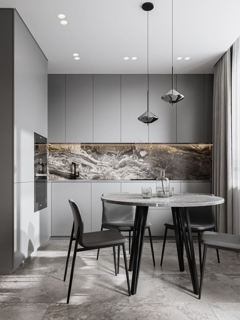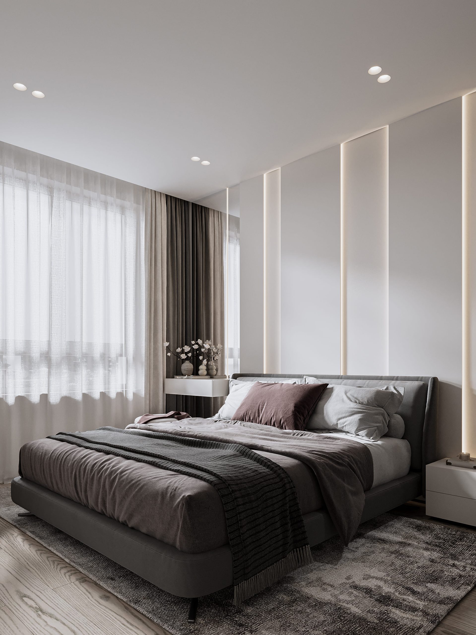 Мария Бойчук избегает вычурных форм, отдавая предпочтение чистым лаконичным линиям. Добавить минималистичному стилю уюта помогли тактильно выразительные фактуры и множество сценариев освещения, создающих камерность и подчёркивающих геометрию помещений. А роскошные детали — эффектный фартук на кухне, премиальный текстиль, оригинальный декор — идеально дополнили общую концепцию, создав атмосферу, характерную для бутик-отеля.