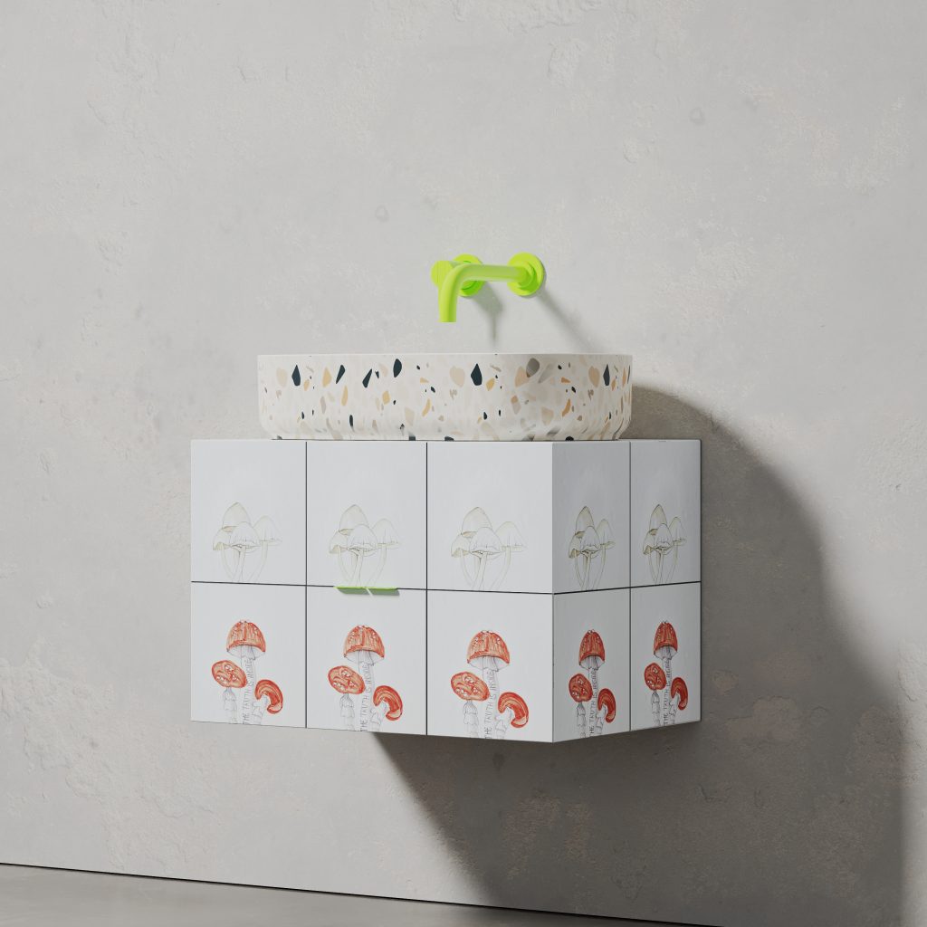 Советская эстетика присутствует также в коллекции «Ковер», который мы предлагаем «постелить» на любую поверхность, так как благодаря размерам 20*20 см он масштабируется от пола до фартука на кухне.