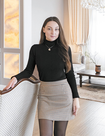 В доме, расположенном в Зеленоградске, на первой береговой линии у гостиницы «Априори», перед спуском к пляжу, проживают муж с женой, а также их взрослые дочери со своими семьями. Поэтому перед дизайнером стояла задача создать настоящую семейную резиденцию, где будет комфортно всем домочадцам. Сам дом выстроен в стиле неопалладианского классицизма — торжественном, со строгими формами. Интерьер же отличает уют, комфорт и простота, свойственные, скорее, современной классике.