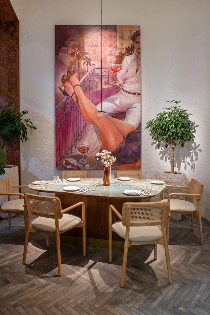 Слияние двух культур транслируется во фрагментах старых испанских и французских фильмов, очаровательных в своей искренности. Забавные и милые картины на курортную тему — яркие акценты на стенах — подталкивают к приятным беседам и размышлениям за бокалом вина.