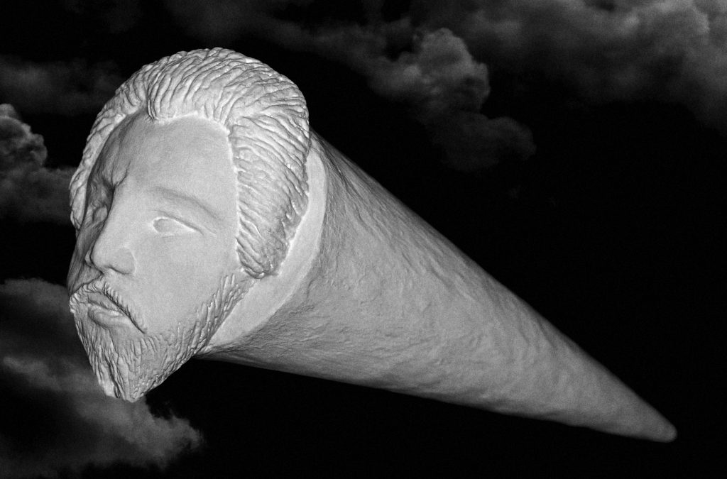 Инсталляция воплощает утопическое движение из «ветхой» реальности к торжеству человеческого гения — движение, где биологическое развитие сливается с идеологическим устремлением в будущее.