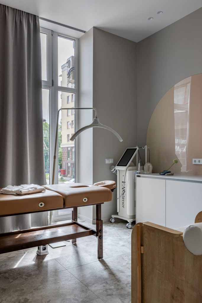 Концепция пространства также родилась как продолжение личности владелицы: деликатной, очень приятной в общении, обладающей великолепным чувством стиля. Автор проекта подчеркнула и перенесла в интерьер и идею бережного отношения к клиенту, и особую гармоничность, и восхищение эстетикой человеческого тела. «Нам хотелось выстроить настоящее девичье царство, но сделать акцент не на «барби-стайл», а на более глубокое понимание женской природы, естественность, обволакивающую мягкость», — говорит дизайнер.