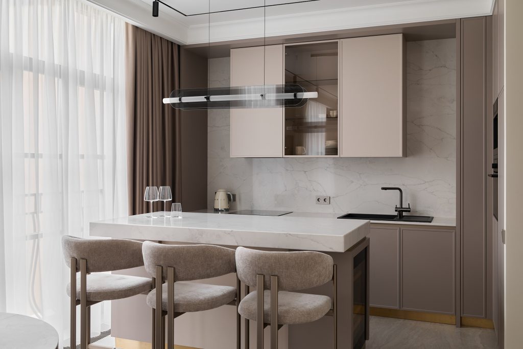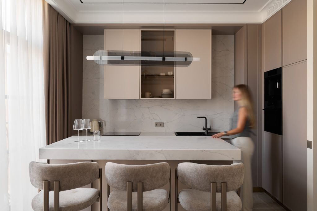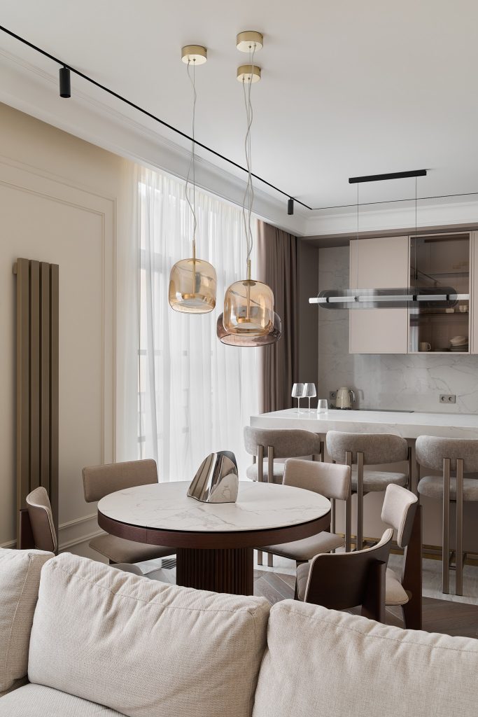 Отдельное внимание уделялось выбору предметов декора и аксессуаров. Они были подобраны таким образом, чтобы поддерживать общую концепцию и одновременно вносить нотки индивидуальности. Каждый арт-объект или декоративный элемент имеет своё значение и добавляет особую атмосферу в общий ансамбль.