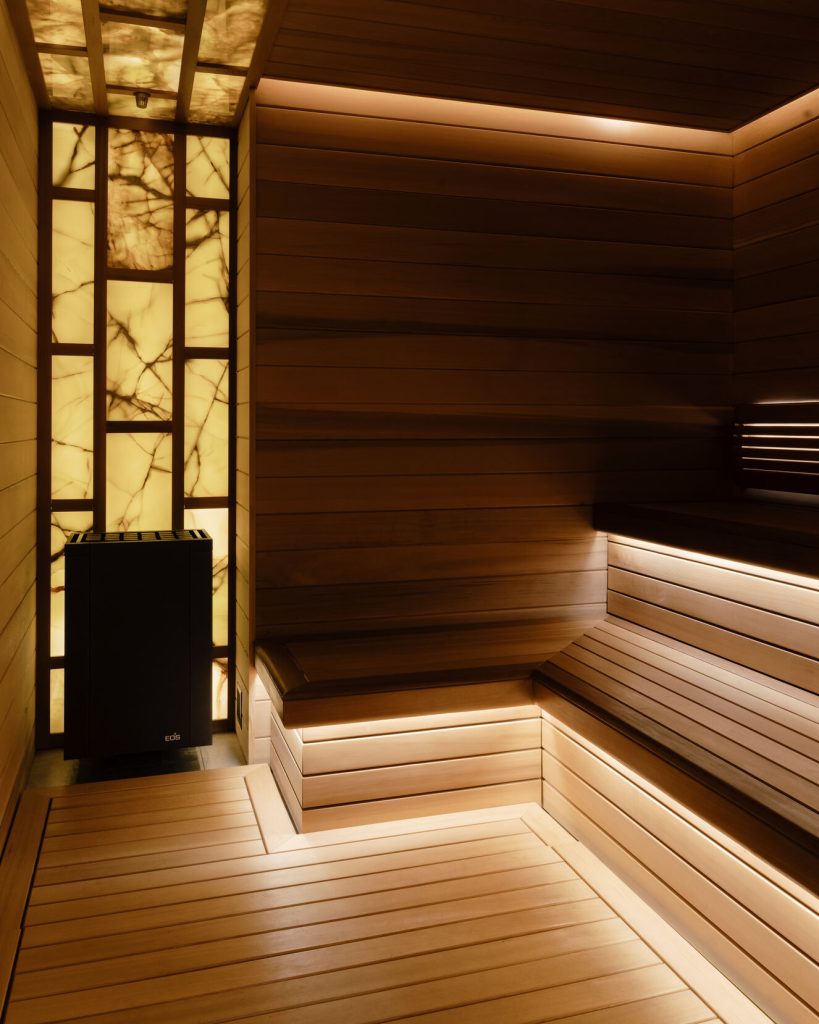 Искусственное освещение выполнено в теплых тонах, создаёт интимную атмосферу вечером и ночью, помогая организму расслабиться перед сном.