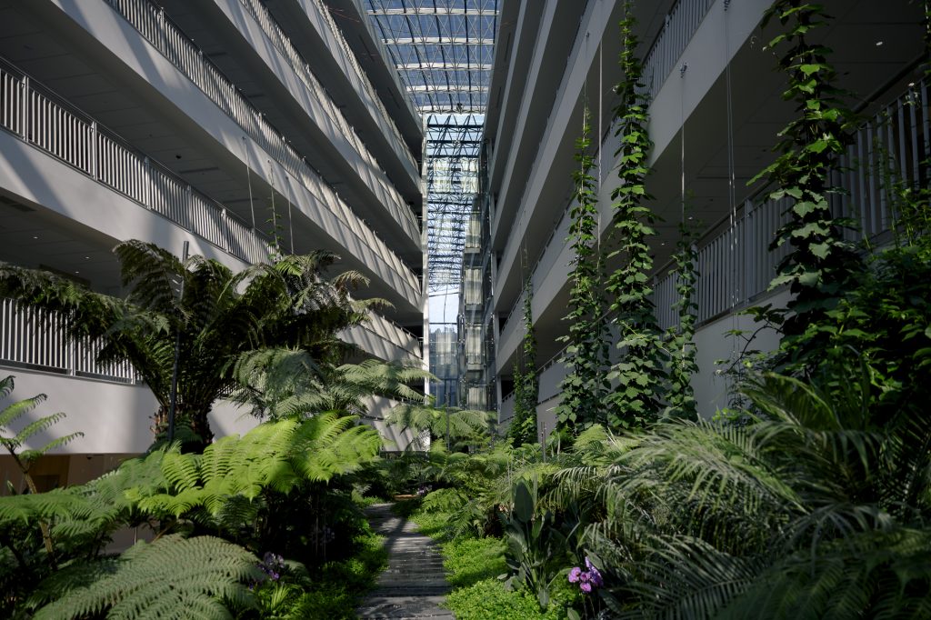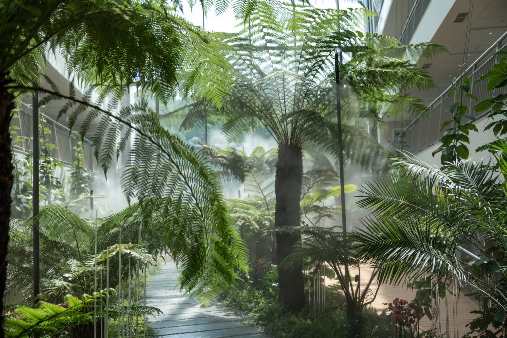 Свет играет ключевую роль в создании атмосферы. Натуральный дневной свет проникает сквозь большие окна и стеклянные крыши, заливая помещения мягким сиянием.