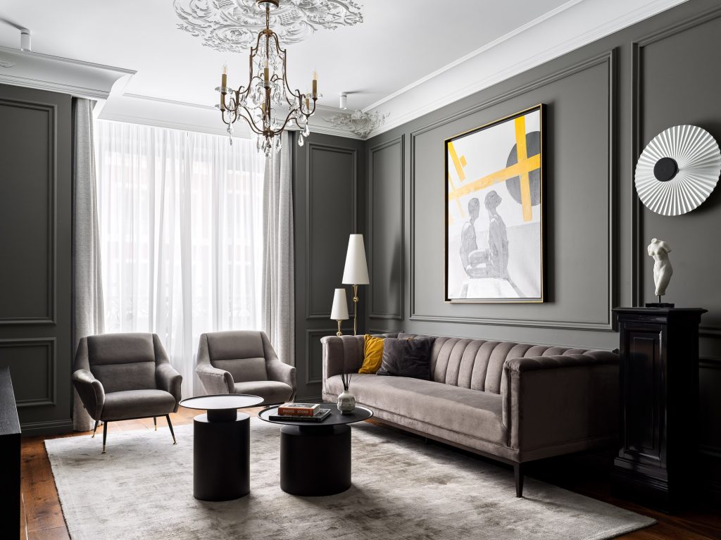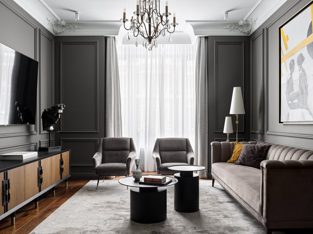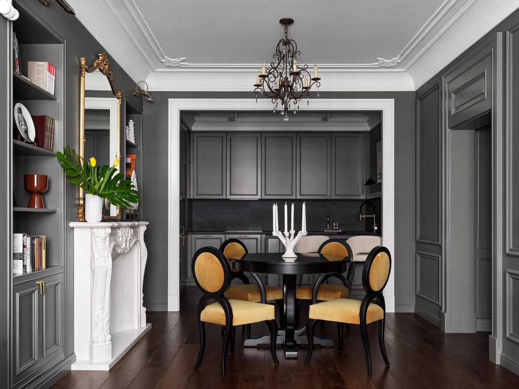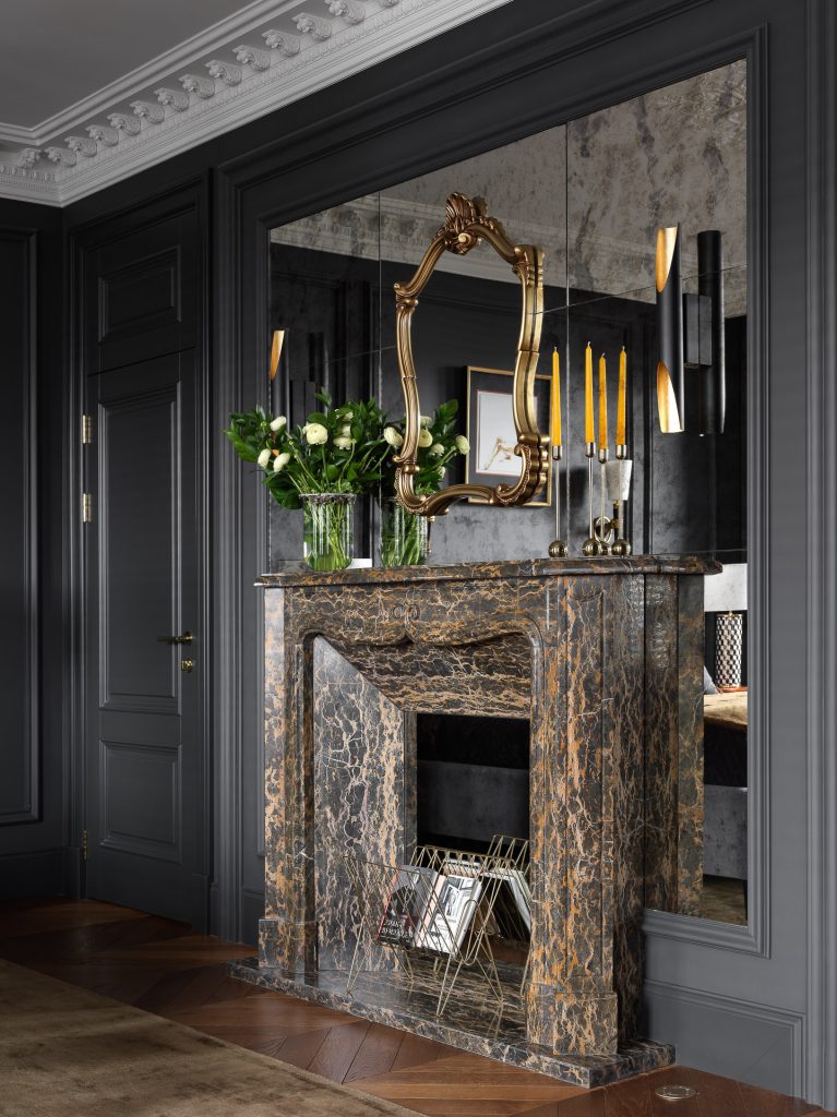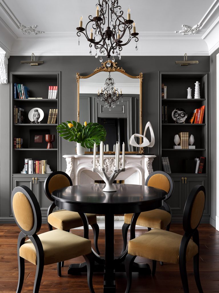 Петербургская парадность и французская легкость, томные серые тона и всплески золота, зеркала и мрамор…все это в интерьере Милы Моргунян.