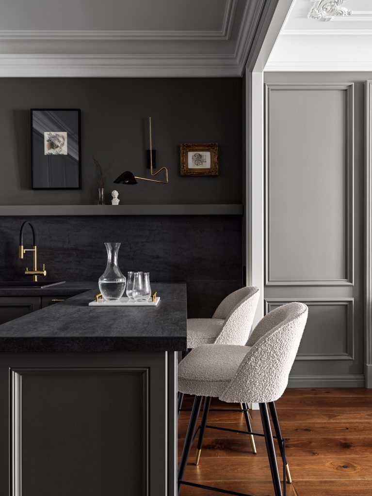 Мила Моргунян решилась на нетривиальное колористическое решение. Заказчица не боялась темных оттенков, несмотря на стереотип о том, что в хмуром Петербурге этого делать нельзя.