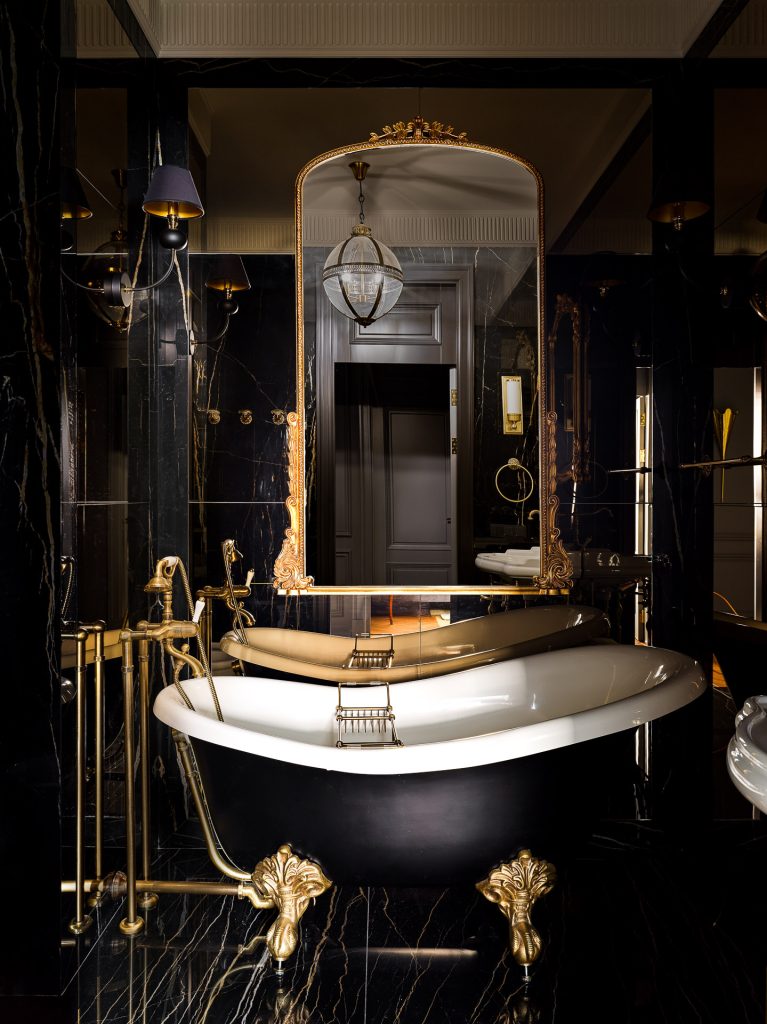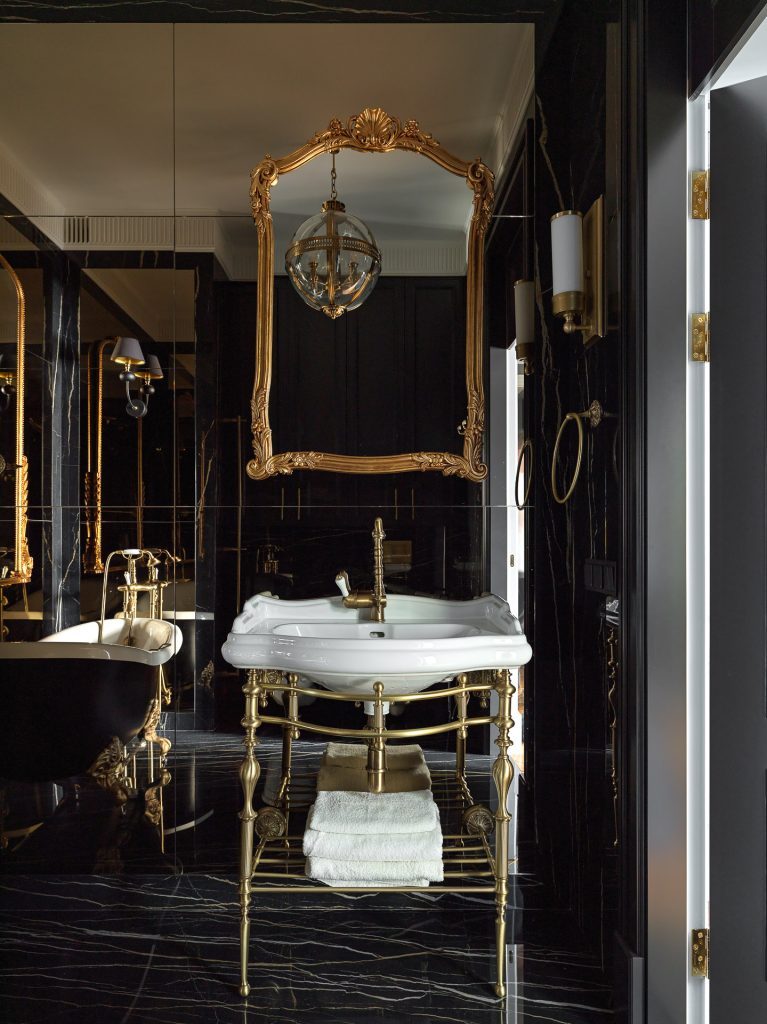 Но кропотливая работа увенчалась успехом, превратив ванную комнату – с лепниной, золотым декором, впечатляющей текстуре керамогранита – в истинный уголок роскоши и наслаждения.
