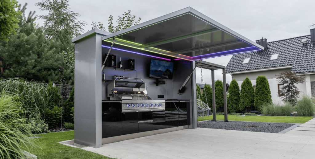 Роскошная кухня на открытом воздухе — великолепное решение для взыскательных клиентов, которые ценят изысканный внешний вид, долговечность и надёжность. Умная кухня, стильная и элегантная, гармонично впишется в общий контекст загородного ландшафта, даст ощущение надёжности, респектабельности, безупречного качества.