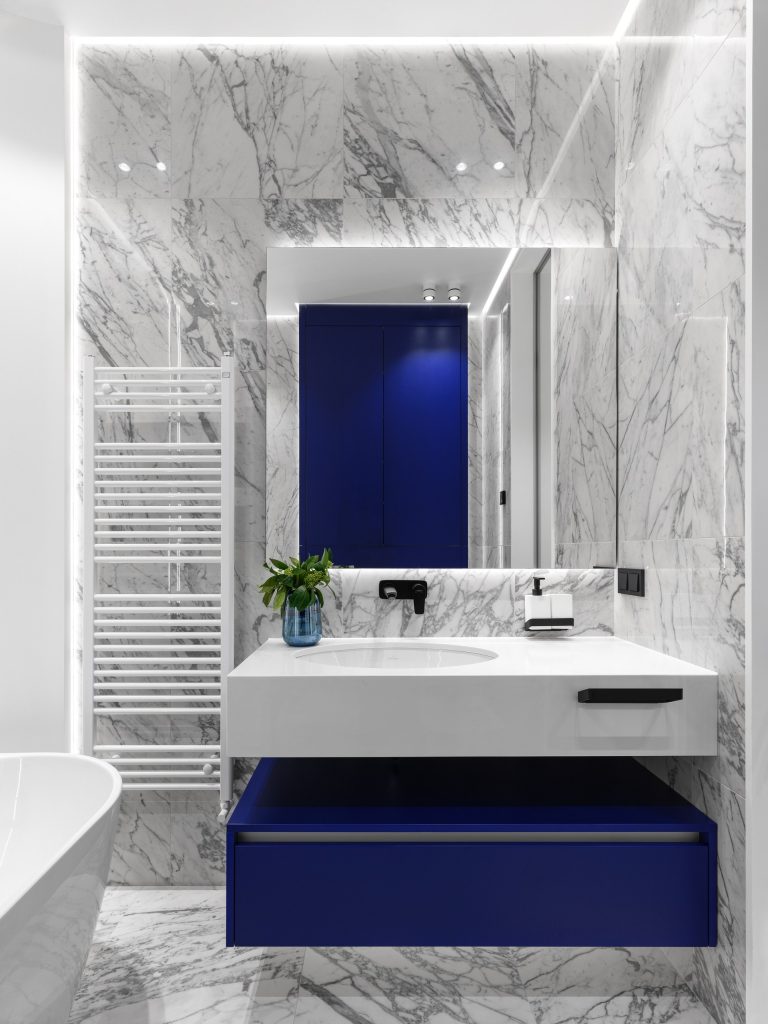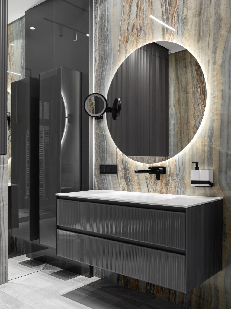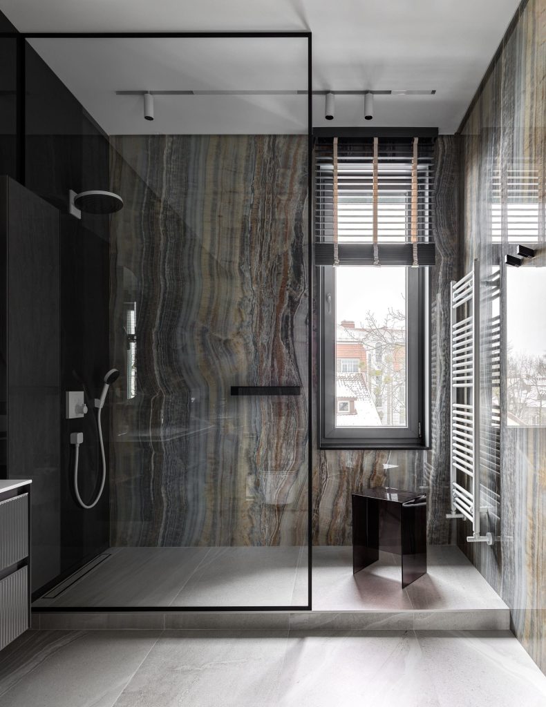 Второе удачное решение — использование благороднейшего натурального материала от OIKOS, в котором сочетаются красота природы и сила натурального камня. Это экологическая инновация Oikos: с 2004 года бренд использует отходы обработки из карьеров в порошкообразном виде. Образуя кремообразную пасту с добавлением смешанных связующих, они воспроизводят природный материал, такой как мрамор и кварцит, не изменяя его характеристик.