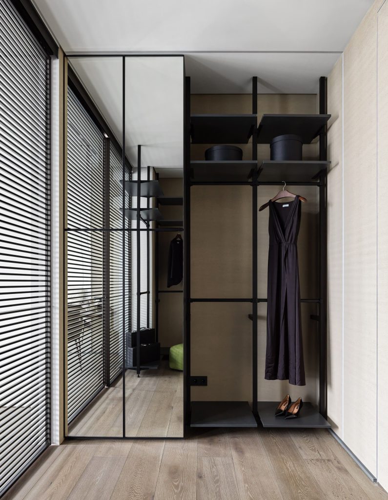 Заказчик — ИТ-специалист, для которого важны стиль, технологии, уют, — мечтал о максимально функциональном современном интерьере с характером. Предполагалось объединить зону кухни, гостиной и столовой, предусмотреть два санузла (при мастер-спальне и кабинете), гостевой санузел, отдельный хозяйственный блок, две гардеробные, дополнительные системы хранения. Мне удалось найти сбалансированное решение для перепланировки, и мы получили комфортную мастер-спальню с гардеробной и душевой, а также кабинет, имеющий собственную ванную и гардеробную.