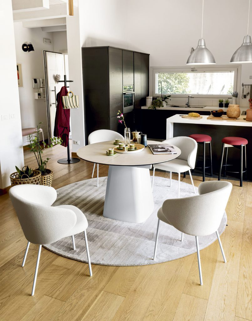 Место единения, встреч, обмена эмоциями и мнениями, новых знакомств и родства душ – такой в Connubia увидели символику бренда: три стула вокруг круглого стола. В ней же дизайнеры нашли свое вдохновение для создания проекта, удовлетворяющего потребности каждого, кто никогда не теряет блеска в глазах и радости единения. Разнообразие ассортимента и неизменная яркость дизайна, плотно сплетенная с эргономикой, сделает из простой обеденной группы место притяжения, станет плацдармом для историй повседневной жизни и создаст красочный островок, где вы сможете с радостью следовать привычному ритму своей жизни.