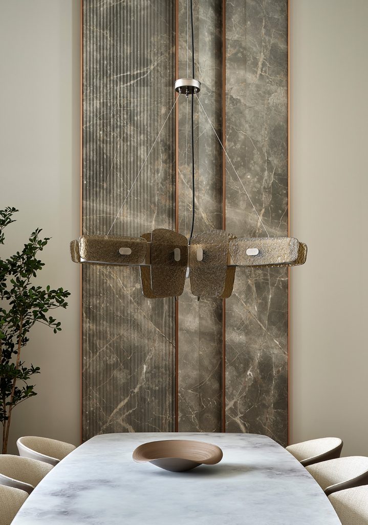 Центром притяжения гостиной становится мраморное панно Fiori di Bosco, притягивающее взгляд своей природной красотой и изысканностью.