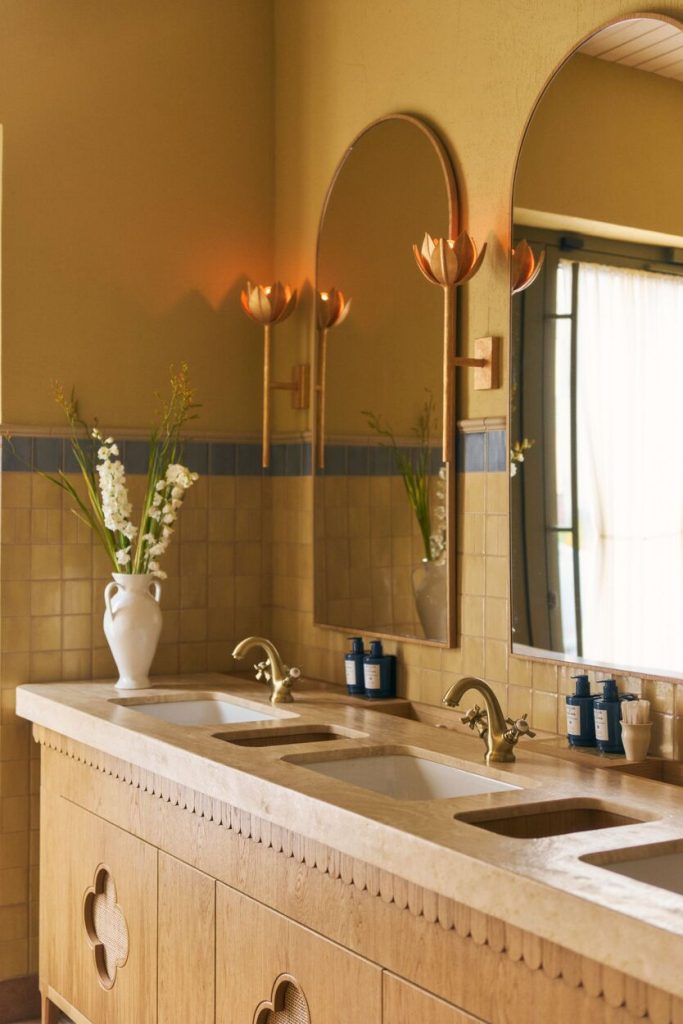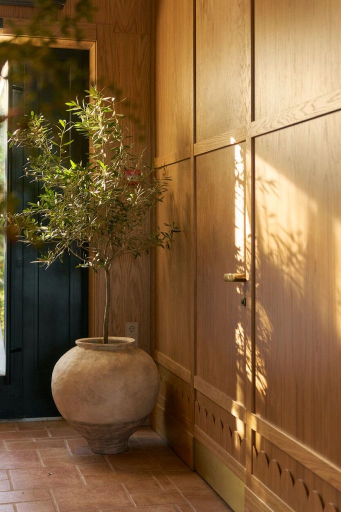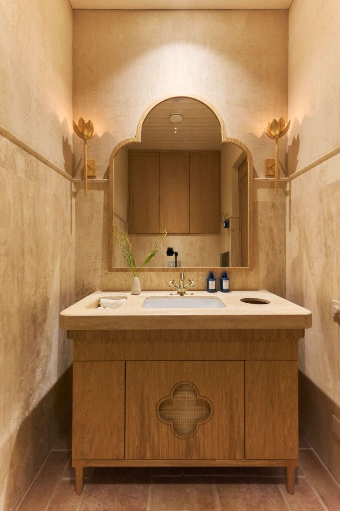 Современная средиземноморская эстетика с лёгкими гастро-нотами раскрывается через палитру натуральных фактур: тёплое дерево и ротанг переплетаются с благородством натурального камня и керамики. Глубину пространству придают материалы: травертин, мрамор, а также изысканная плитка от бренда Monopole и Kerama Marazzi, создающие ощущение тактильного и визуального богатства.