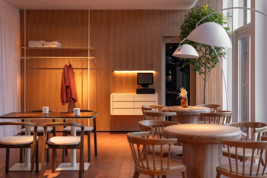 Интерьер продуман до мелочей — от мягких природных оттенков до деревянных поверхностей, к которым приятно прикасаться. Почти каждая деталь здесь сделана вручную, и в этом чувствуется не просто дизайн, а искреннее отношение к делу. Камень, дерево, ткань — натуральные материалы задают тон: спокойный, открытый, располагающий. Они создают ту самую атмосферу, в которой хочется остаться подольше.