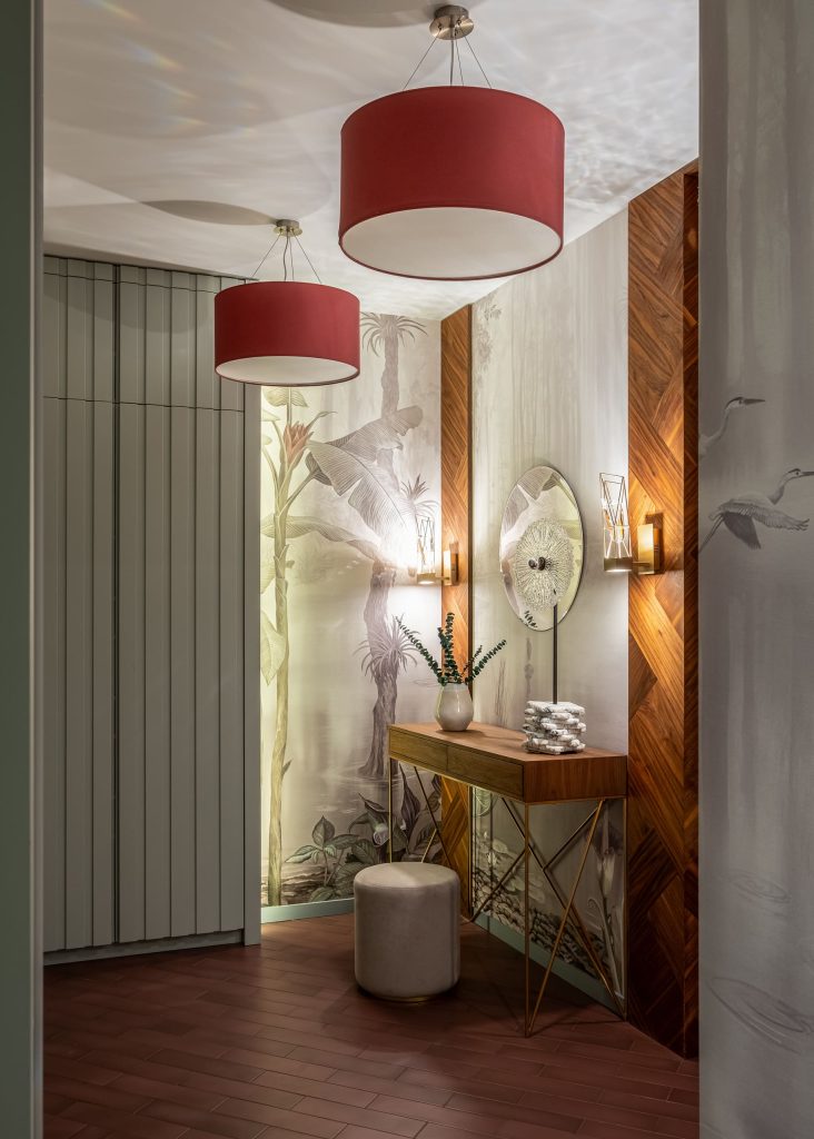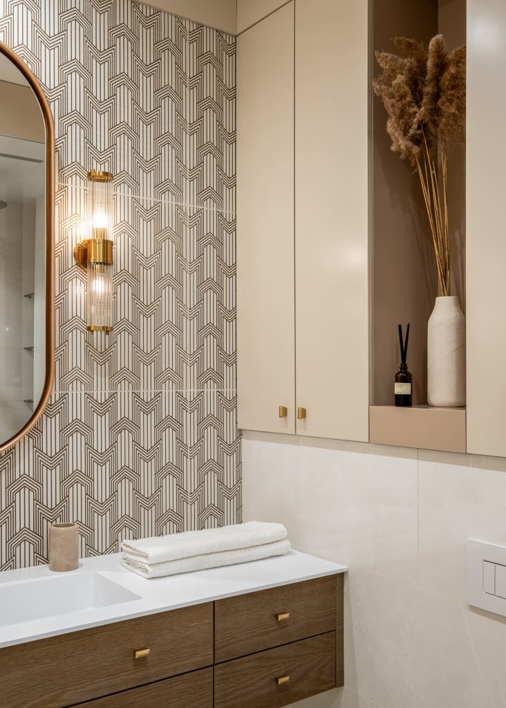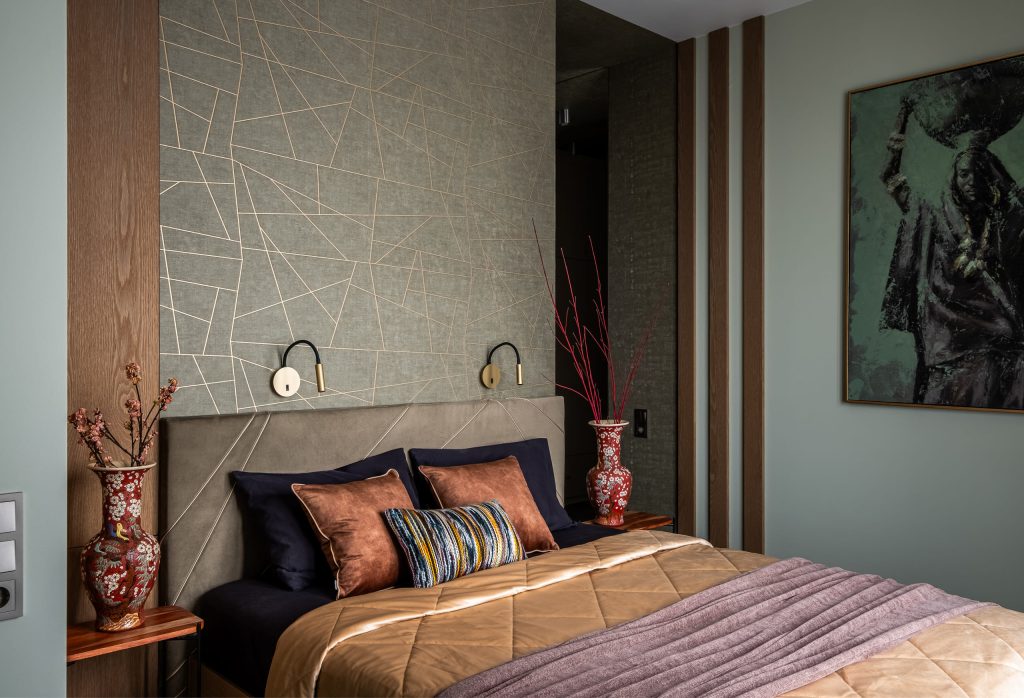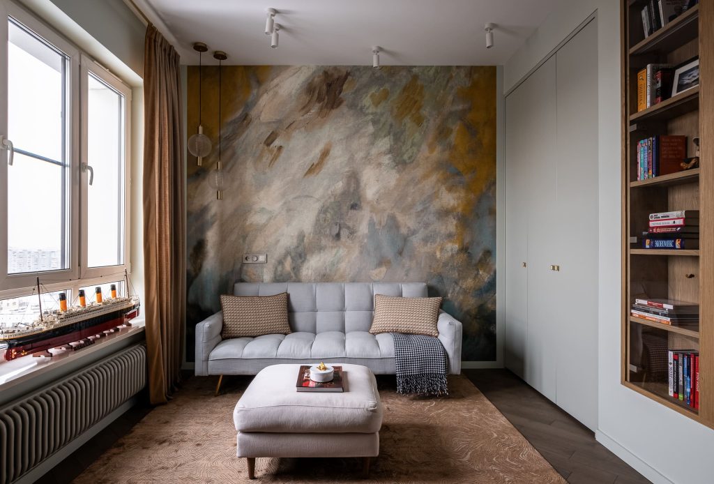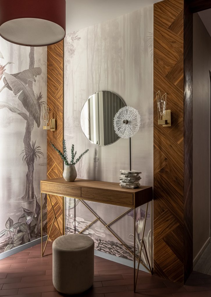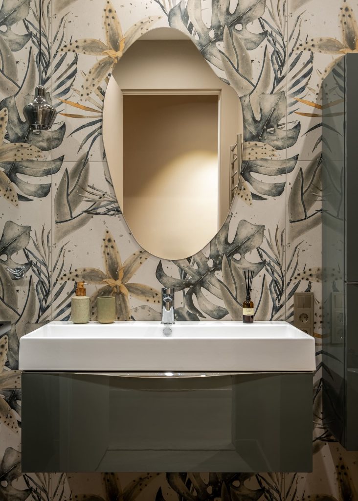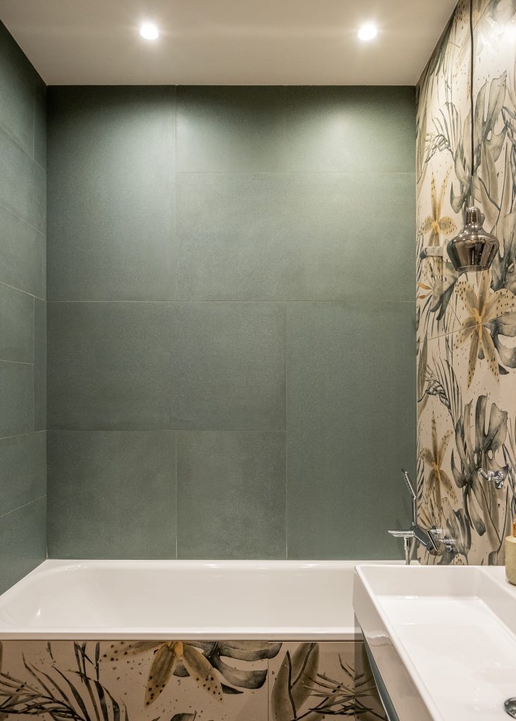 В кабинете акцентная стена, вобравшая в себя естественные краски, превратилась в эффектнейшую деталь, оттеняющую лаконичную обстановку. А на плитке ванной комнаты расцвёл настоящий райский сад, напоминая владельцам о том, что их дом всегда остаётся для них источником истинной радости!