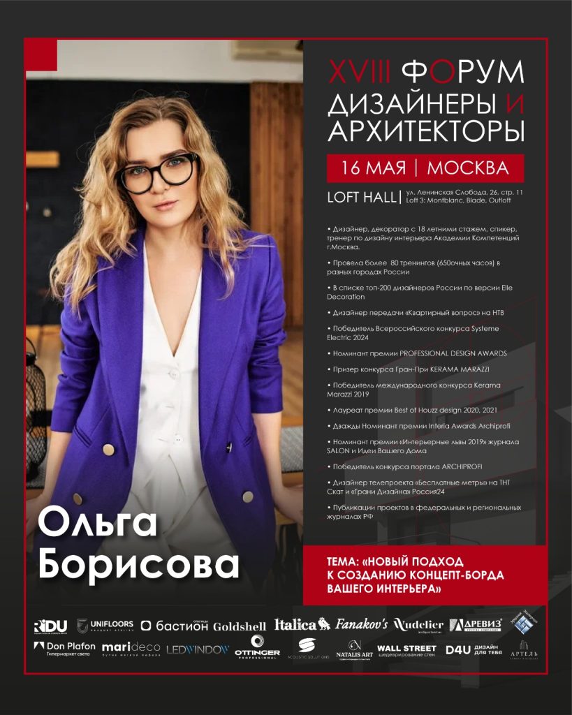 Ольга Борисова представит инновационный формат: «Новый подход к созданию концепт-борда вашего интерьера».