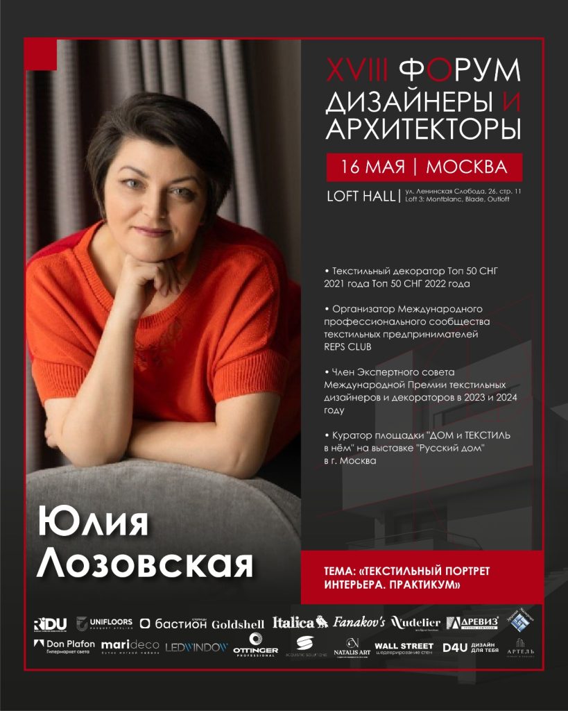 - Юлия Лозовская проведет мастер-класс: «Текстильный портрет интерьера. Практикум».